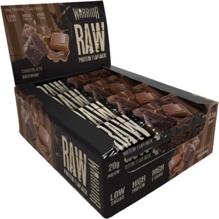 Warrior Raw Protein Flapjacks – 12 Bars x 75g Each – Packed with 20g of Protein – Low Sugar, High in Fibre (Choc Brownie)