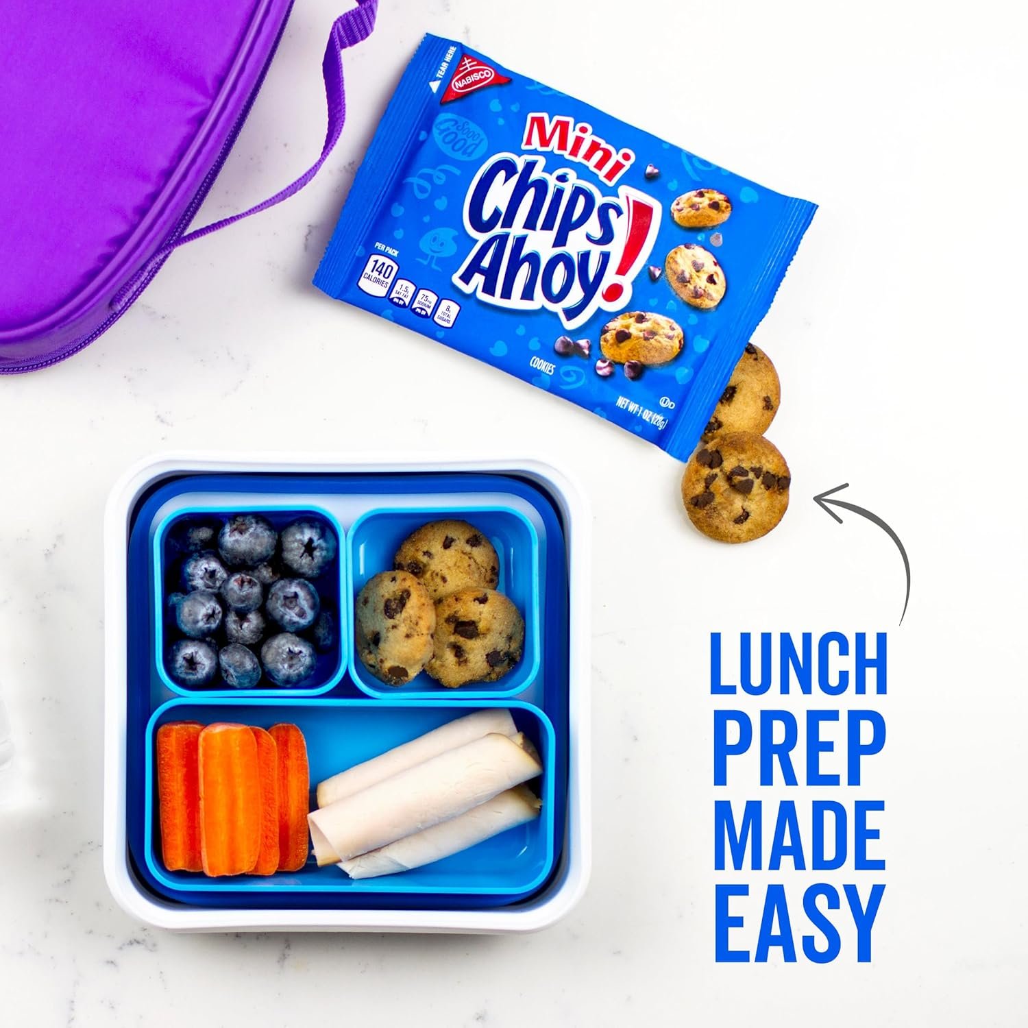 This Nabisco Cookies and Candy Variety Pack includes SOUR PATCH KIDS Soft & Chewy Candy, Mini CHIPS AHOY! Chocolate Chip Cookies, and OREO Mini Chocolate Sandwich Cookies for a mix of cookie and candy snacking options in ready-to-travel snack packs. SOUR PATCH KIDS soft candy is a deliciously sweet treat that’s SOUR. SWEET. GONE. OREO Mini Cookies offer a tiny twist on the classic OREO sandwich cookies you love. Mini CHIPS AHOY! Cookies are the classic CHIPS AHOY! snack cookies, still with just the right amount of crunch, but bite-sized. Each bulk snacks box includes 30 individually wrapped snacks packages.